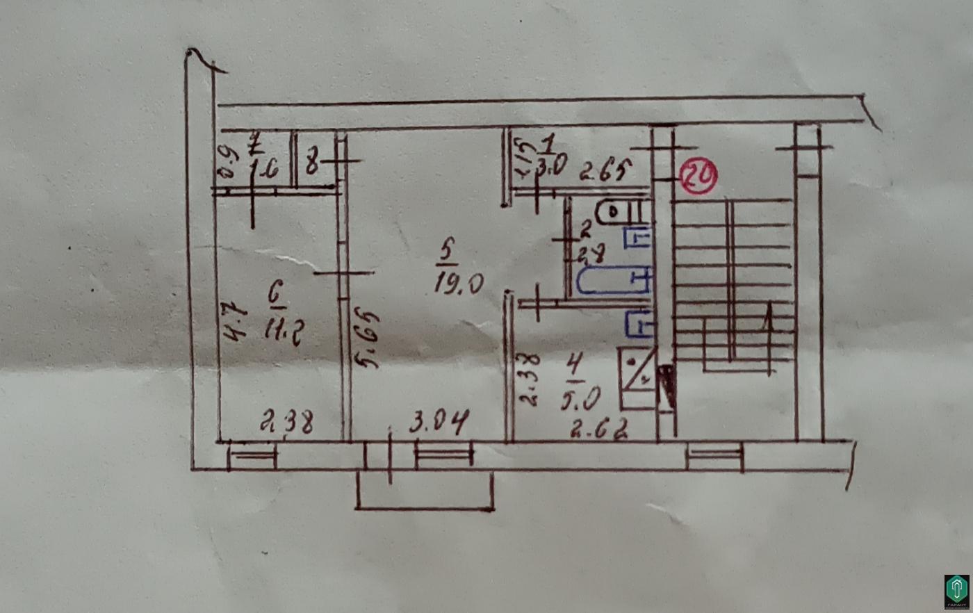 Квартира общей площадью 43.7 кв.м., жилая площадь 30,2 кв.м, кухня 5.0 кв. м., комнаты (11.2 кв.м, 19.0 кв.м.).  Всё окна и балкон блок заменённые на металлопластиковые.