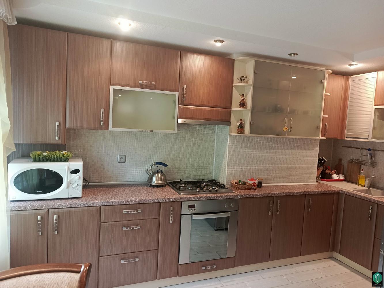 Квартира находится на 2 этаже девятиэтажного панельного дома. Общая площадь квартиры 64.2 кв. м., жилая площадь 37кв. м. В квартире абсолютно новый ремонт , никто в ней не жил до момента продажи. Новая электрика во всей квартире. Новая сантехника, канализация, радиаторы отопления биметал. Индивидуальное отопление с двухконтурным котлом. Во всех комнатах ламинат (частично керамогранитная плитка). В ванной комнате плитка и теплый пол(ванная с джакузи и массажем). В гостиной обеденная группа (стол и стулья) выполнены с натурального дуба., диван и кресло выполнены с натуральной кожи. В квартире установлена сплит-система, дополнительная ёмкость на 500 литров м подъемным насосом что обеспечивает бесперебойную подачу холодной и горячей воды. Квартира продаётся со всем содержимым на фотографиях.