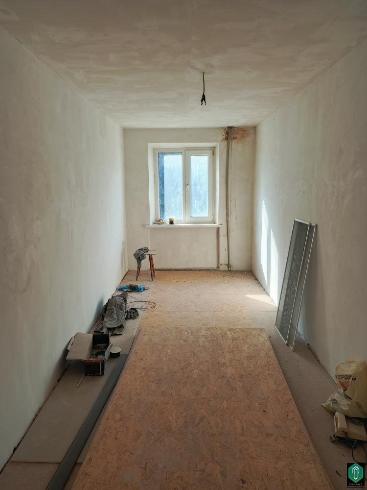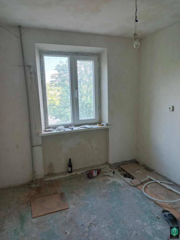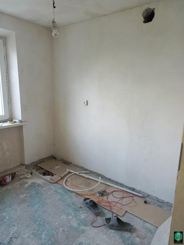 Квартира в стадии незавершённого ремонта. Вся сантехника, канализация и электрика заменены. Стены обшиты гипсокартоном и оштукатуренные, готовые под поклейку обоев. Полы в спальне выровнены УСБ , материалы на зал есть в наличии. Окна и балконный блок заменены на металлопластиковые.